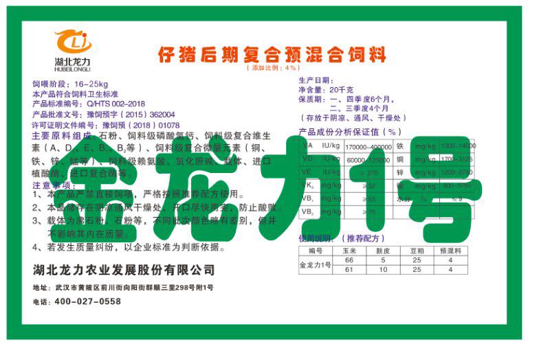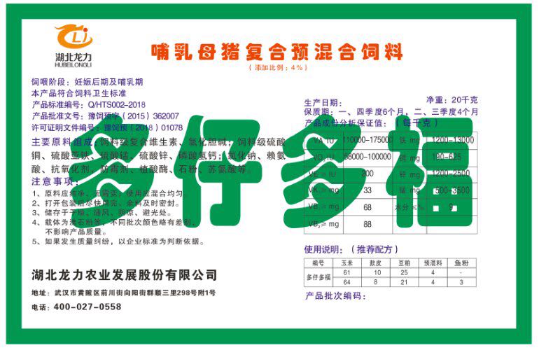 湖北龍力農(nóng)業(yè)發(fā)展股份有限公司坐落于武漢市黃陂區(qū)前川街向陽街群順三里298號附1號。公司成立于2014年6月,公司自成立以來把“創(chuàng)全球最大養(yǎng)豬綜合服務(wù)”為企業(yè)愿景。致力于打造教保料品牌”作為公司發(fā)展的明確目標(biāo)。公司一直致力于豬營養(yǎng)的研究和開發(fā),積極與國內(nèi)外高校和科研機(jī)構(gòu)合作,推廣養(yǎng)豬技術(shù)、動(dòng)物營養(yǎng)新概念,向世界農(nóng)牧企業(yè)學(xué)習(xí)與合作。公司采用國內(nèi)先進(jìn)的生產(chǎn)工藝,選擇高精度電子配料秤,高均勻度、無殘留混合機(jī)等先進(jìn)設(shè)備....